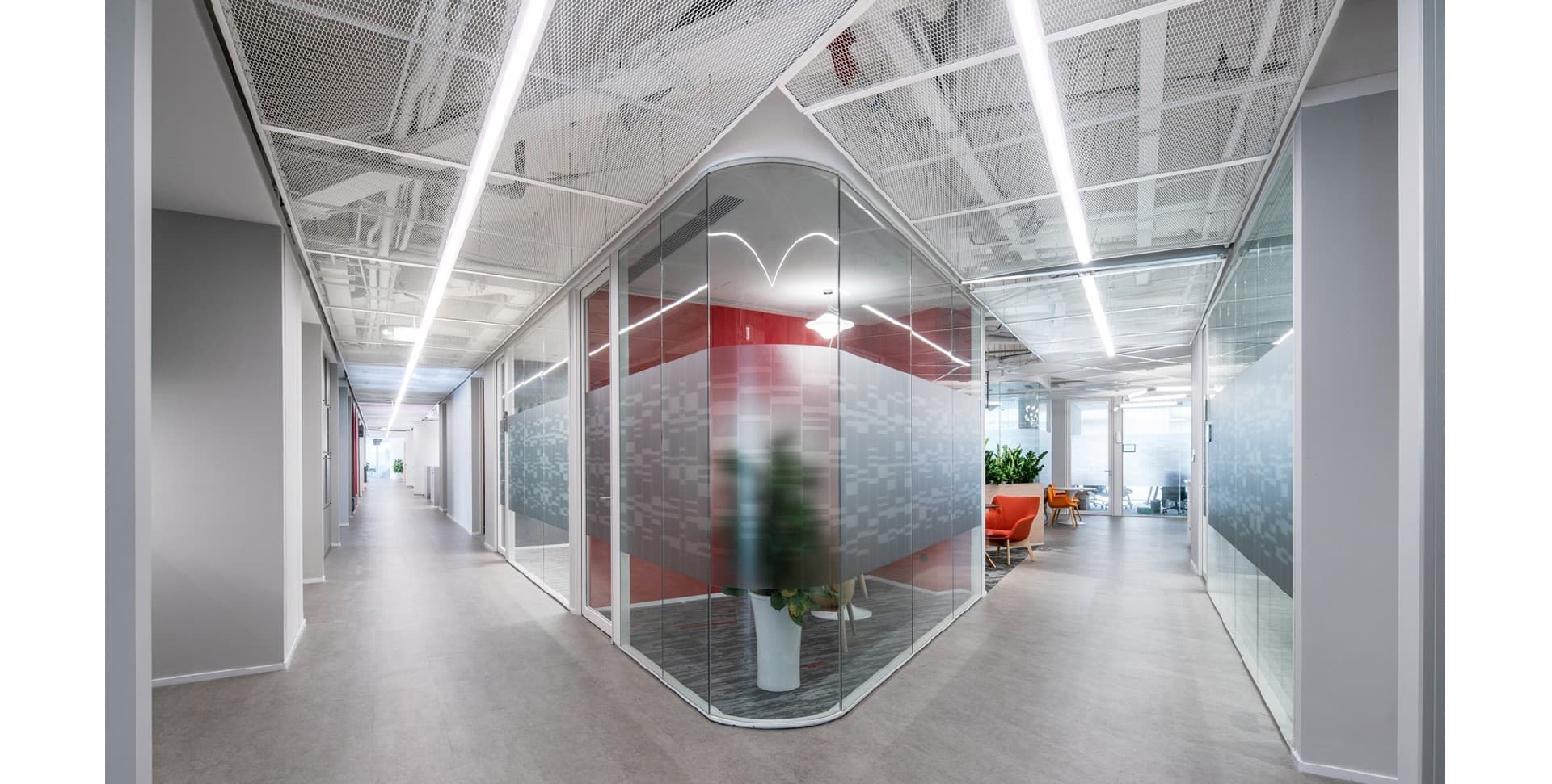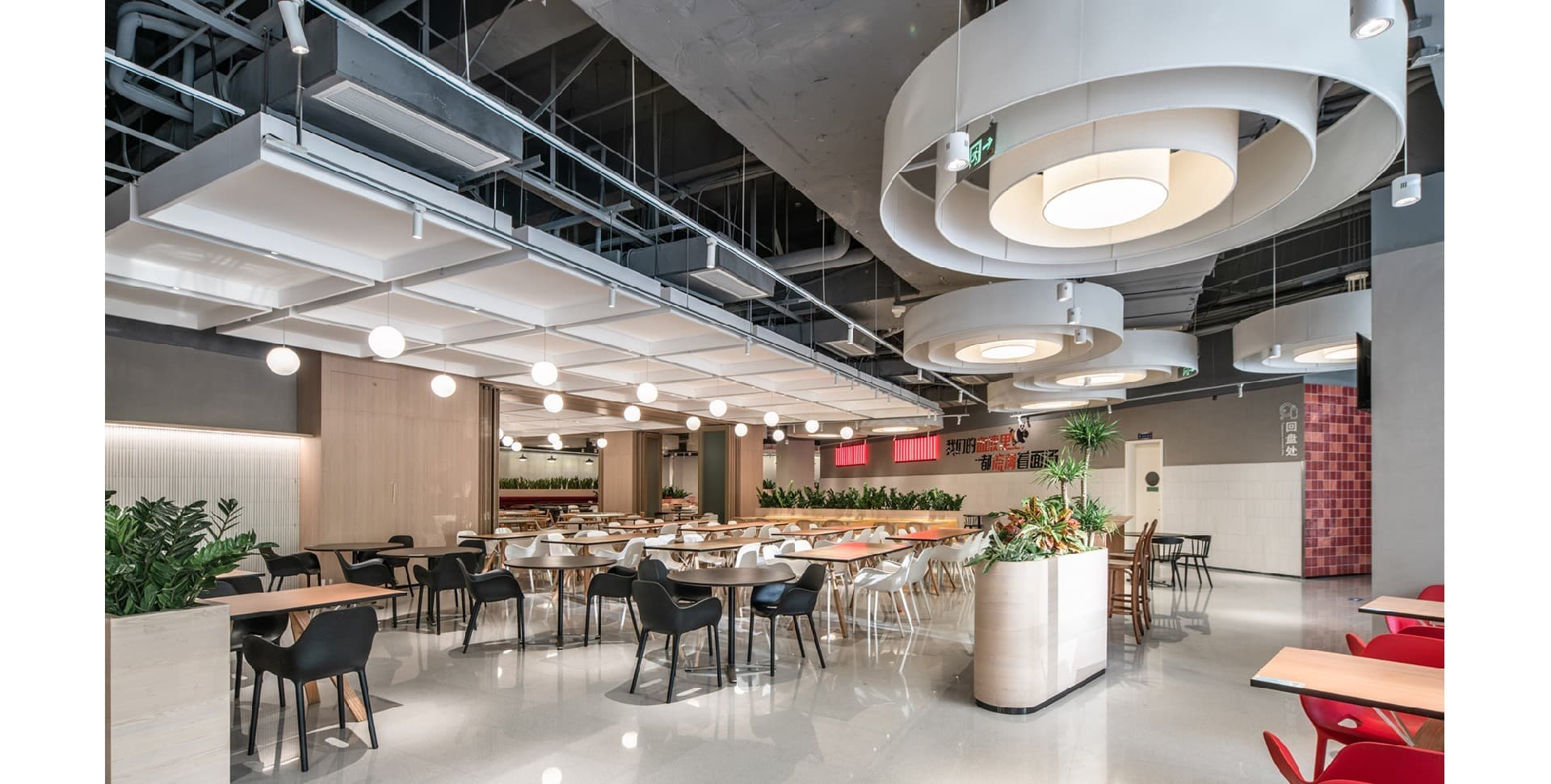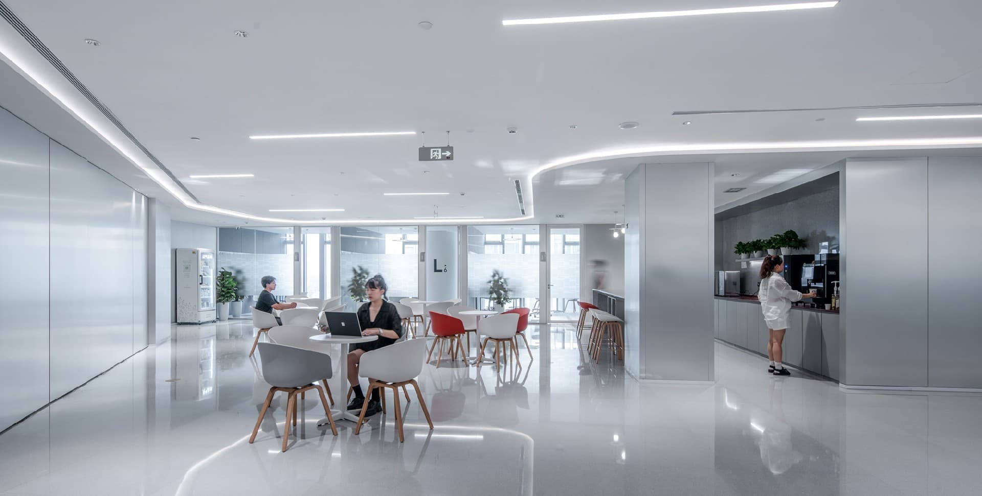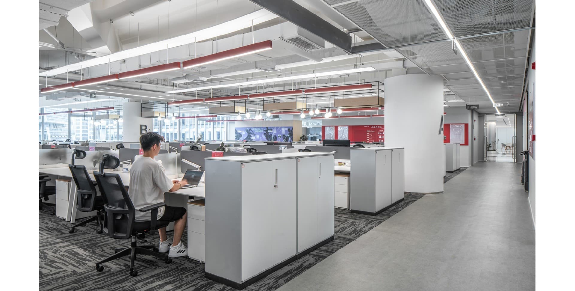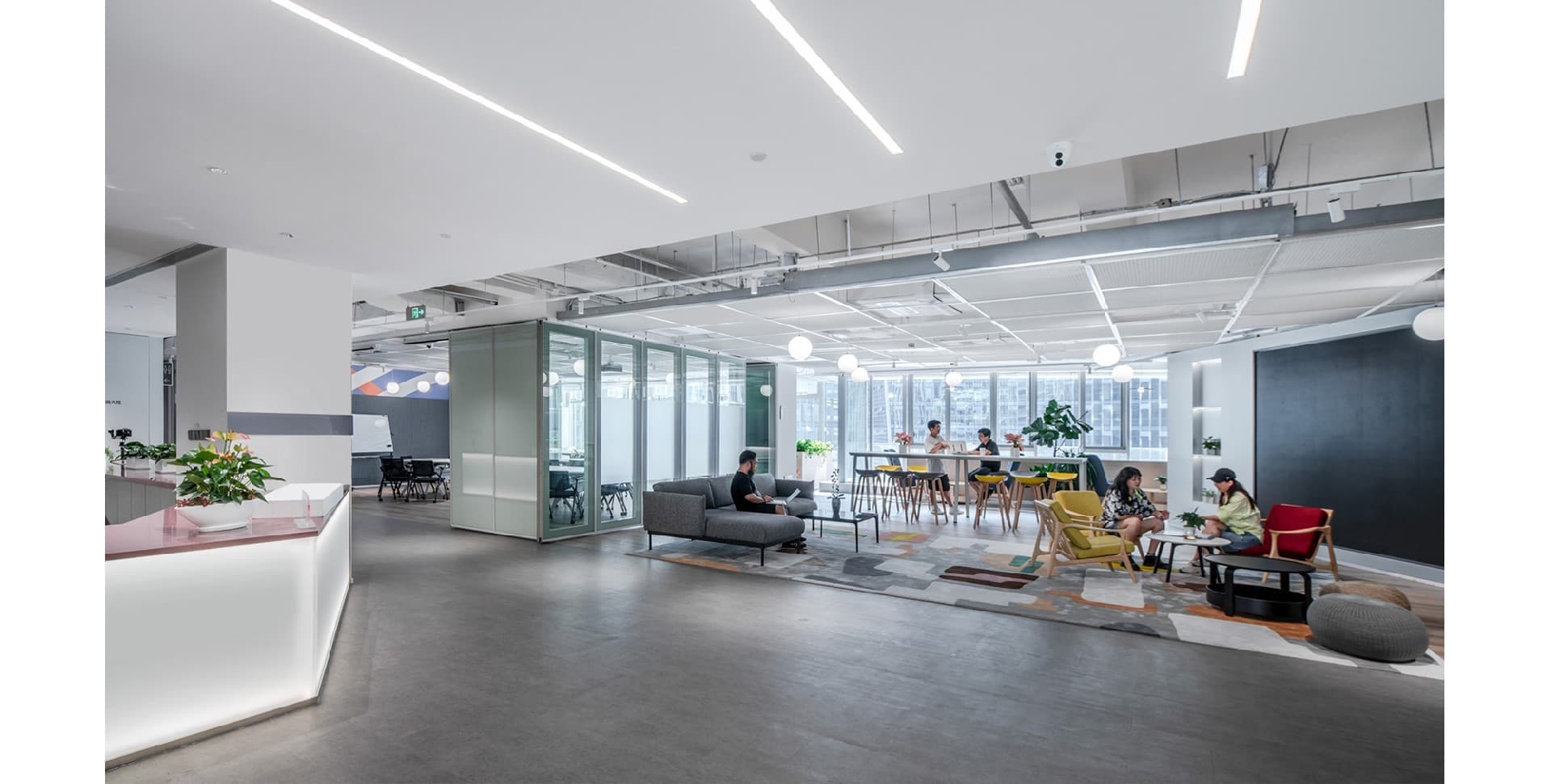 The design combines modern technological elements with natural plants to create a modern and warm environment. By designing multifunctional office spaces, different work needs can be met...