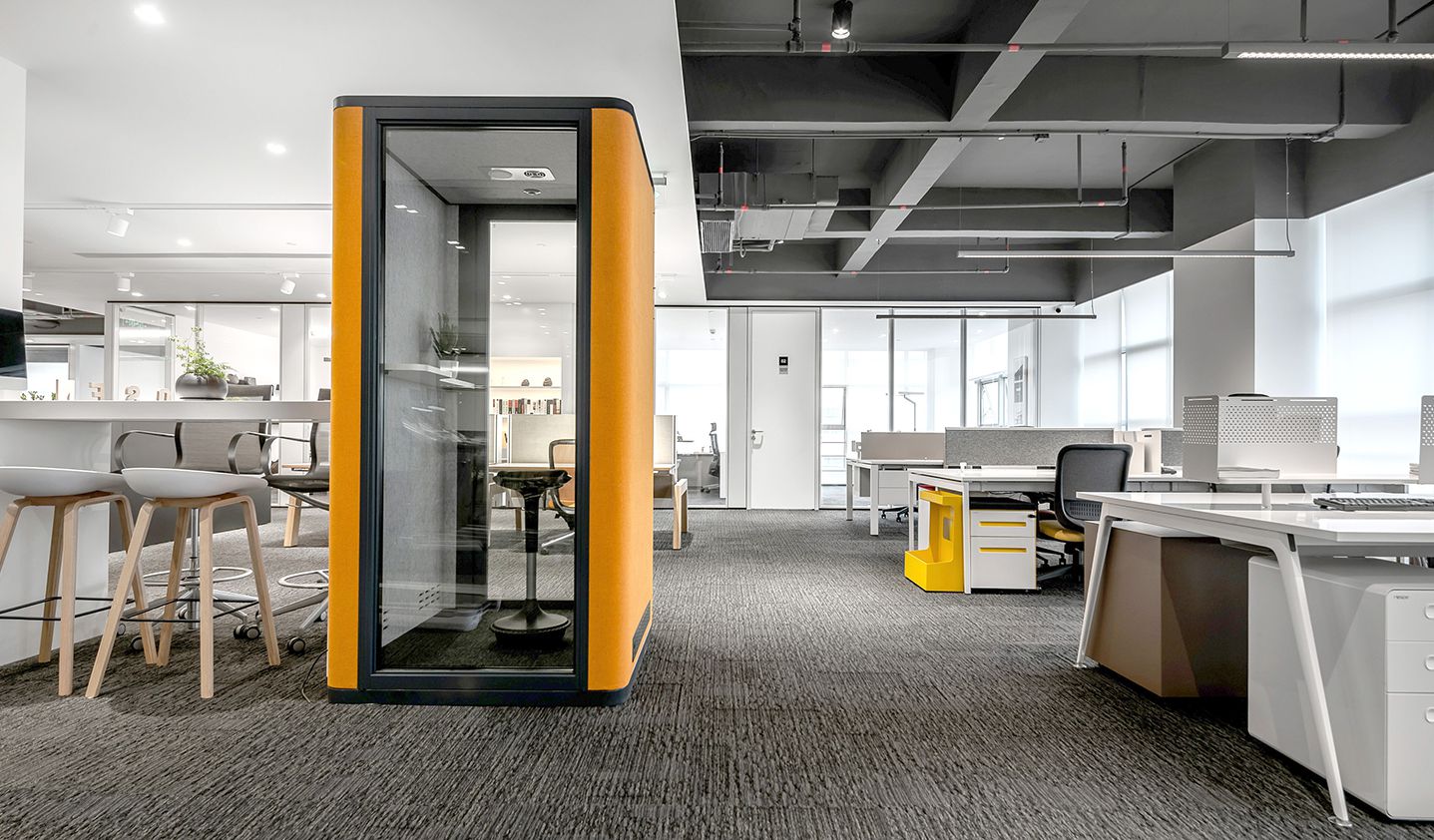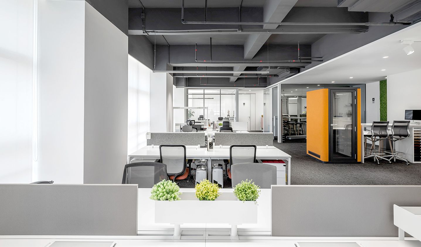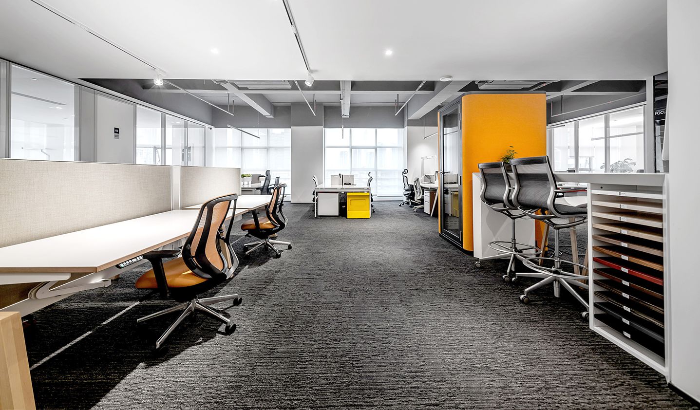 用色彩的語言來來表達空間的情感,鮮艷明亮的橘色打造視覺盛宴,激發(fā)對工作的熱情同時表達了設計師對單一空間的色彩點綴的點睛之筆......