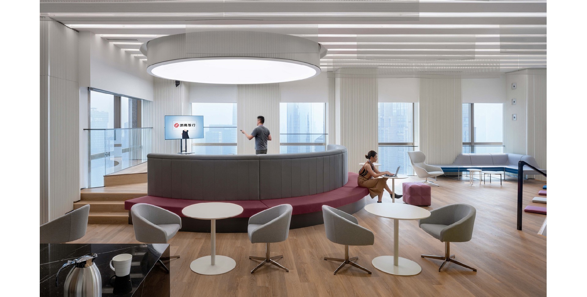 The design combines simple lines, bright lighting, and modern art to showcase the openness and foresight of modern office spaces. By applying the principles of color theory, a bright color has been added to the monotonous...