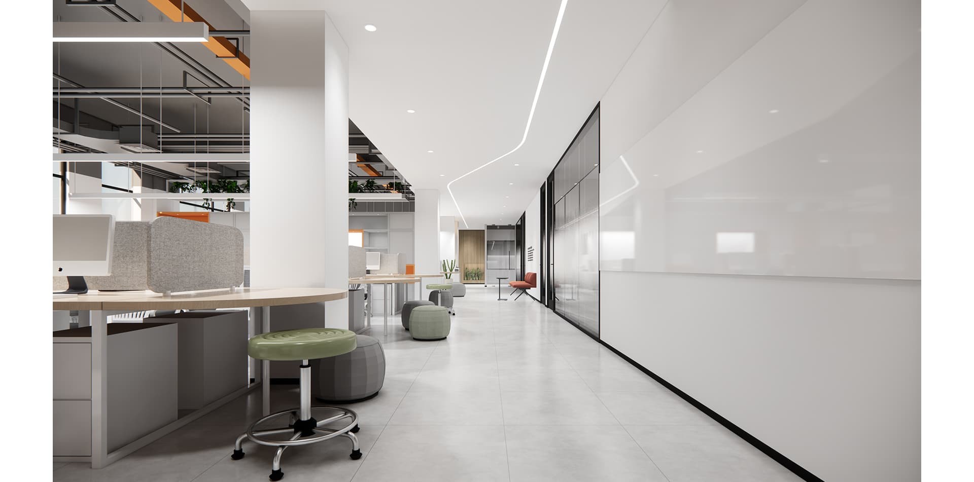 上海夢茂包裝辦公室裝修設(shè)計(jì)以?簡約凝練?為空間基調(diào),融合品牌元素與企業(yè)文化,通過?開放靈動(dòng)的布局?與?藝術(shù)裝置式產(chǎn)品展示?,打造兼具品牌氣質(zhì)與互動(dòng)性的辦公空間。