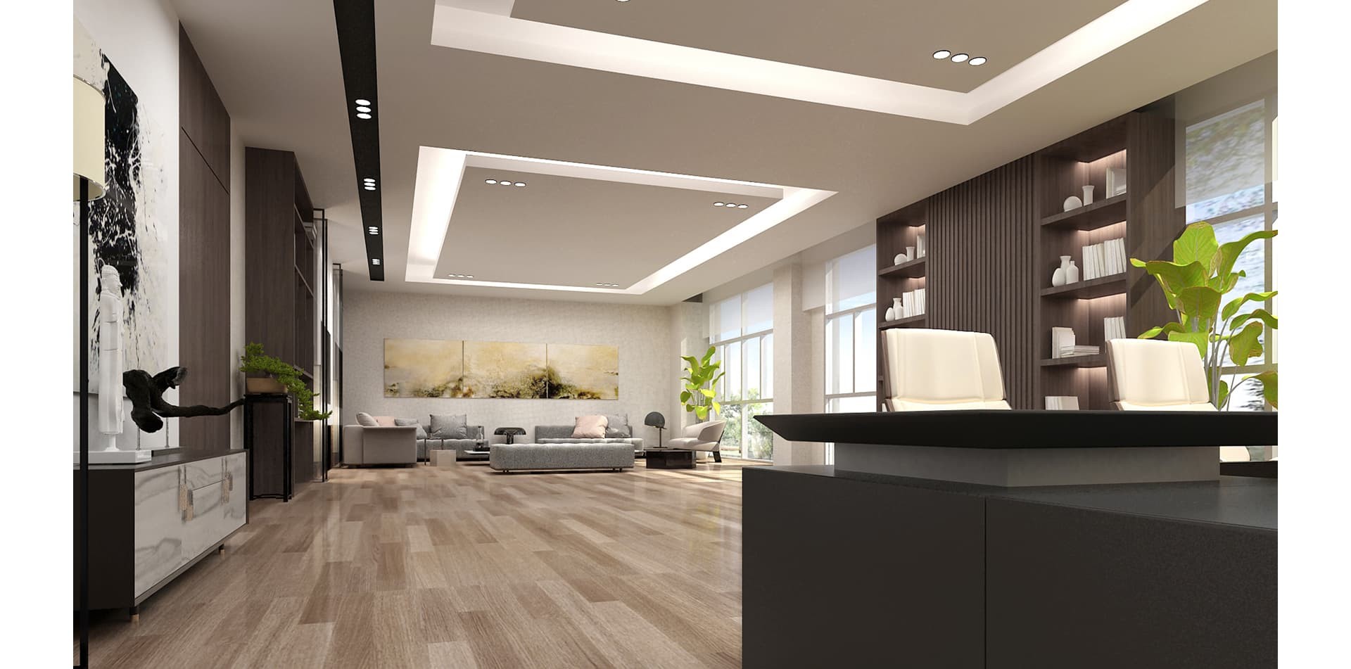 跨度鋼業(yè)辦公室裝修設(shè)計(jì)以?鋼結(jié)構(gòu)?為視覺核心,搭配?玻璃隔斷?與?木質(zhì)元素?,營造?通透大氣?的辦公氛圍,兼具工業(yè)風(fēng)粗獷質(zhì)感與現(xiàn)代辦公的開放協(xié)作屬性。